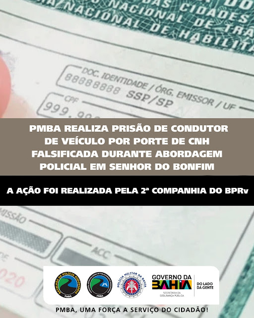 Um homem foi preso na manhã deste sábado (18) por uso de documento falso durante uma abordagem policial na BA-131, em Senhor do Bonfim.
